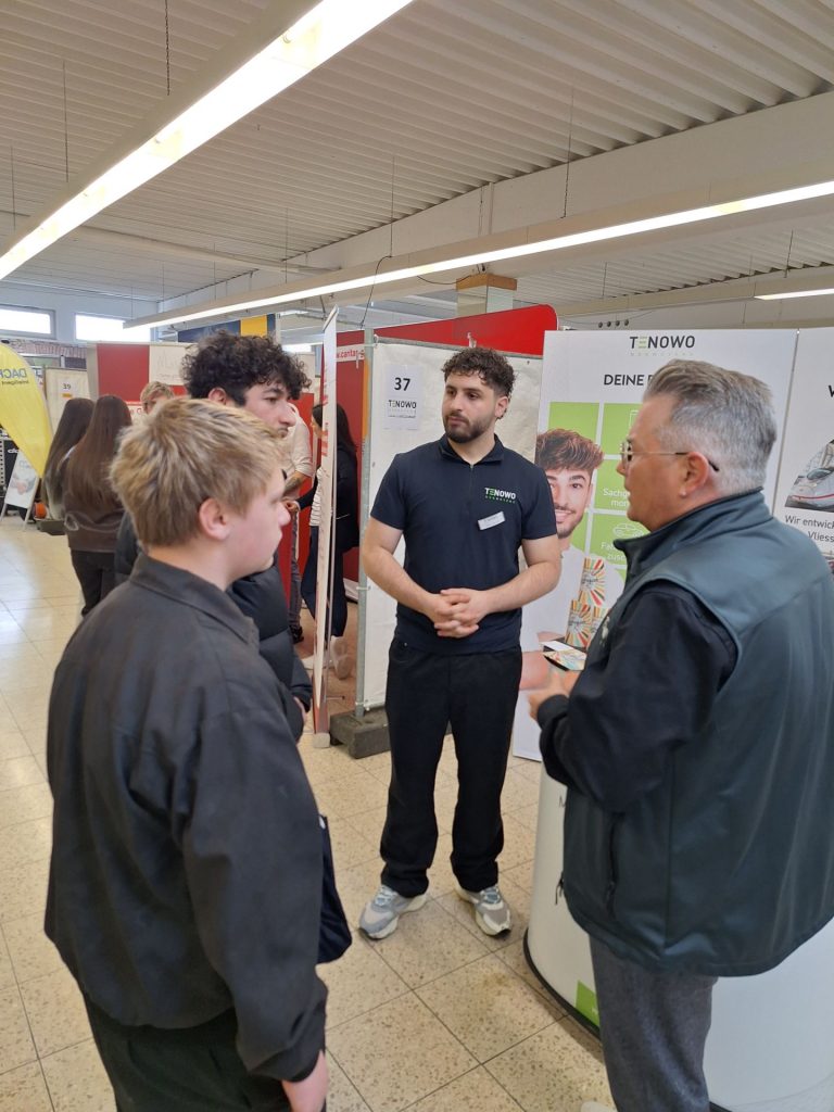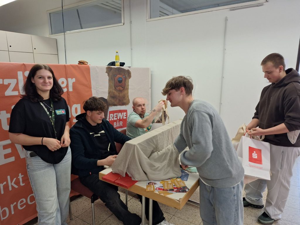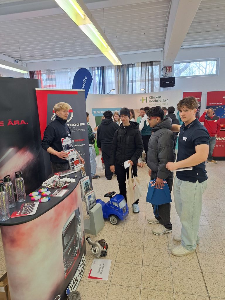 Heute fand in der ehemaligen Stofffabrik der 7. Helmbrechtser KarriereTreff statt – und wir waren mit dabei! Die 7., 8. und 9. Klasse nutzten die Gelegenheit, um sich vor Ort über verschiedene Berufe und Zukunftsmöglichkeiten zu informieren. Zahlreiche regionale Unternehmen stellten ihre Ausbildungsangebote, Studiengänge und Jobs vor. Unsere Schülerinnen und Schüler konnten ganz unkompliziert ins Gespräch kommen, Fragen stellen und spannende Einblicke in die unterschiedlichsten Berufsfelder gewinnen. Ob Handwerk, Industrie, Pflege, Verwaltung oder Handel – für jeden war etwas Interessantes dabei. Viele nutzten die Chance, erste Kontakte zu knüpfen und sich ein besseres Bild von möglichen beruflichen Wegen zu machen. Der KarriereTreff war insgesamt eine sehr gelungene und für unsere Schülerinnen und Schüler ansprechende Veranstaltung, die die Berufsorientierung auf eine tolle und praxisnahe Weise unterstützt hat. Ein großes Dankeschön an alle Beteiligten für diesen informativen Tag!